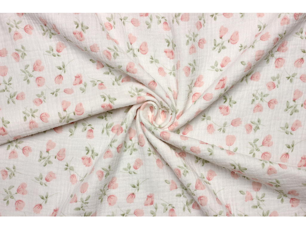 Dvojitá gázovina | mušelín - Květinový vzor růže