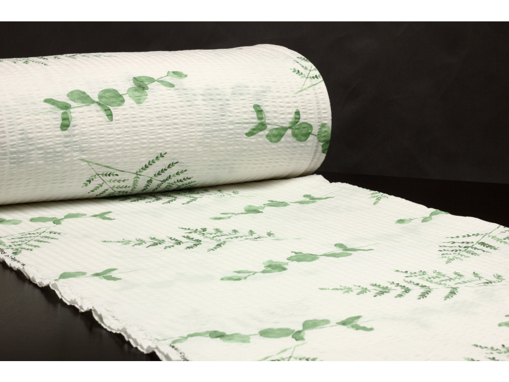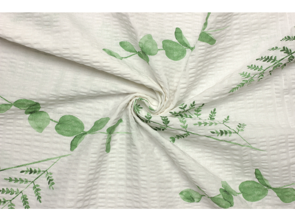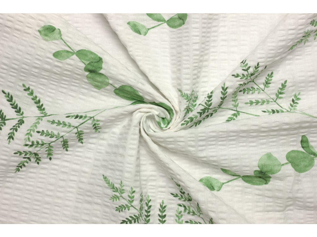 Bavlněné plátno krep 240 cm šíře - Eukalyptus a kapradina