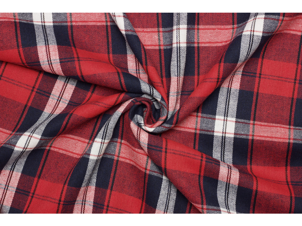 Tento károvaný flanel je česaný z lícové strany. Nejvíce se bude hodit na šití košil, sukní, šatů, kalhot, pyžam, apod.