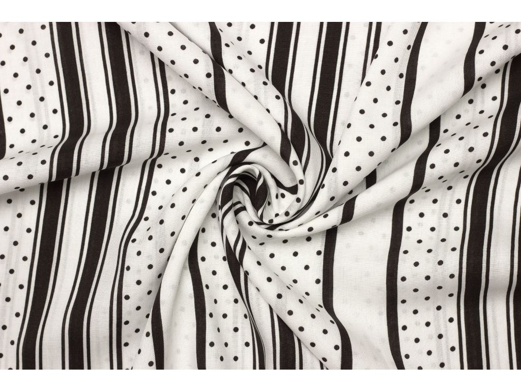 Šatová | halenková látka viskózová - Bílá s proužky a puntíky