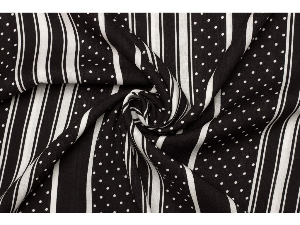 Šatová | halenková látka viskózová - Černá s proužky a puntíky