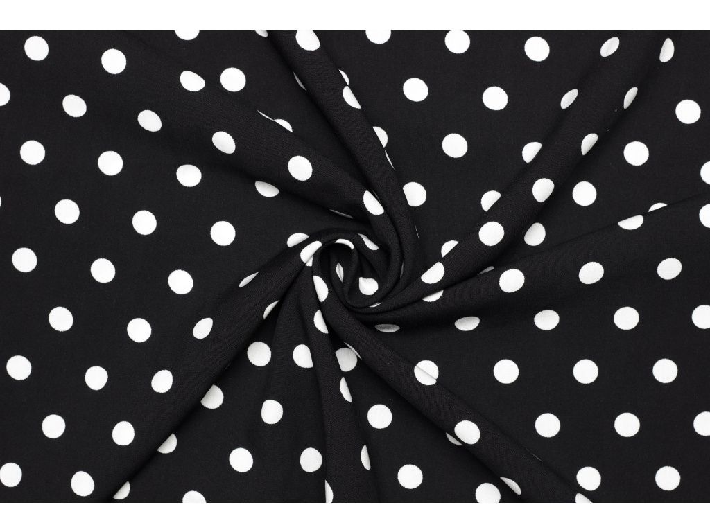 Šatová látka viskózová - Černá s puntíkem