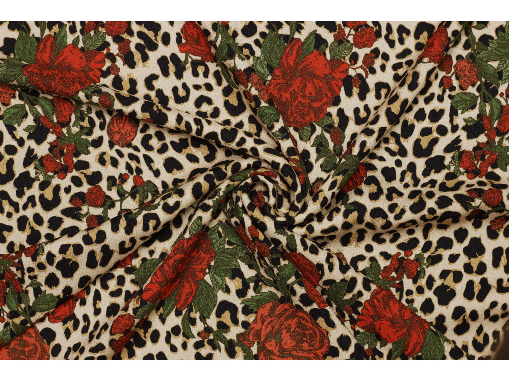 Šatový | halenkový žoržet viskózový - Zvířecí vzor s růžemi