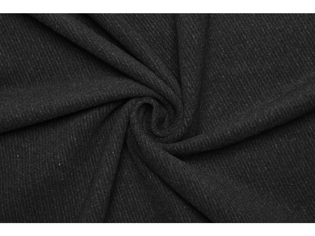 Kabátová vlna směsová - Černá v keprové (twill) vazbě