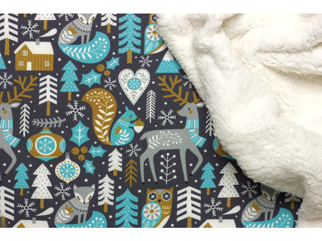 Softshell sherpa | beránek - Lesní vzor jelen, liška, veverka, sova