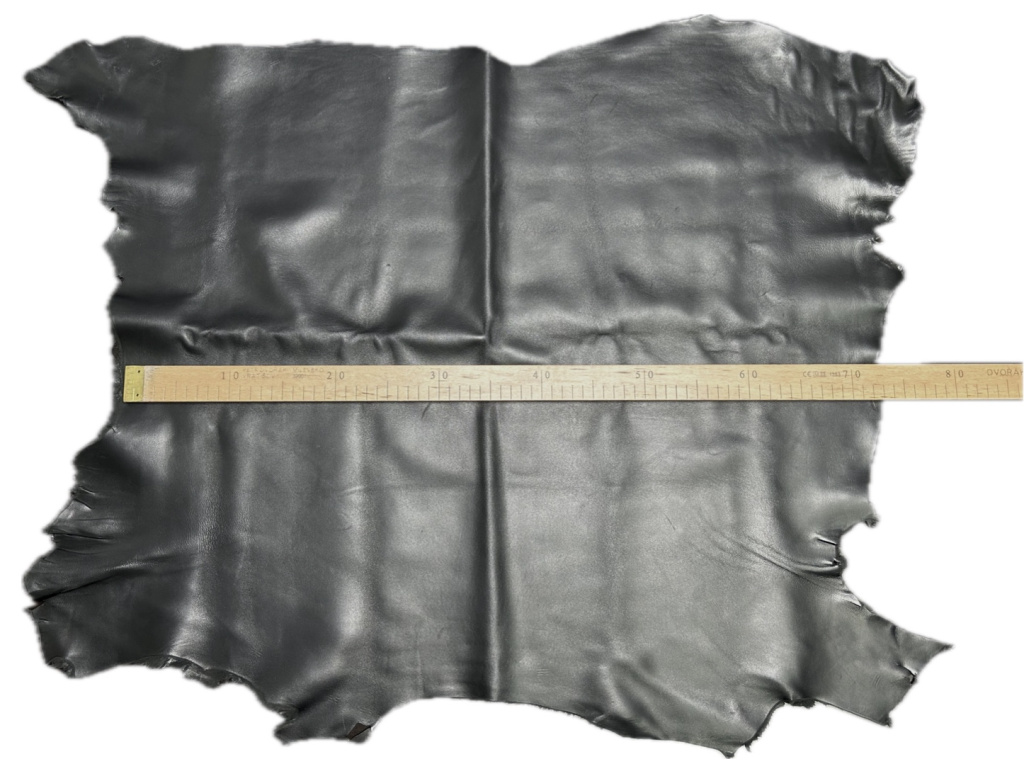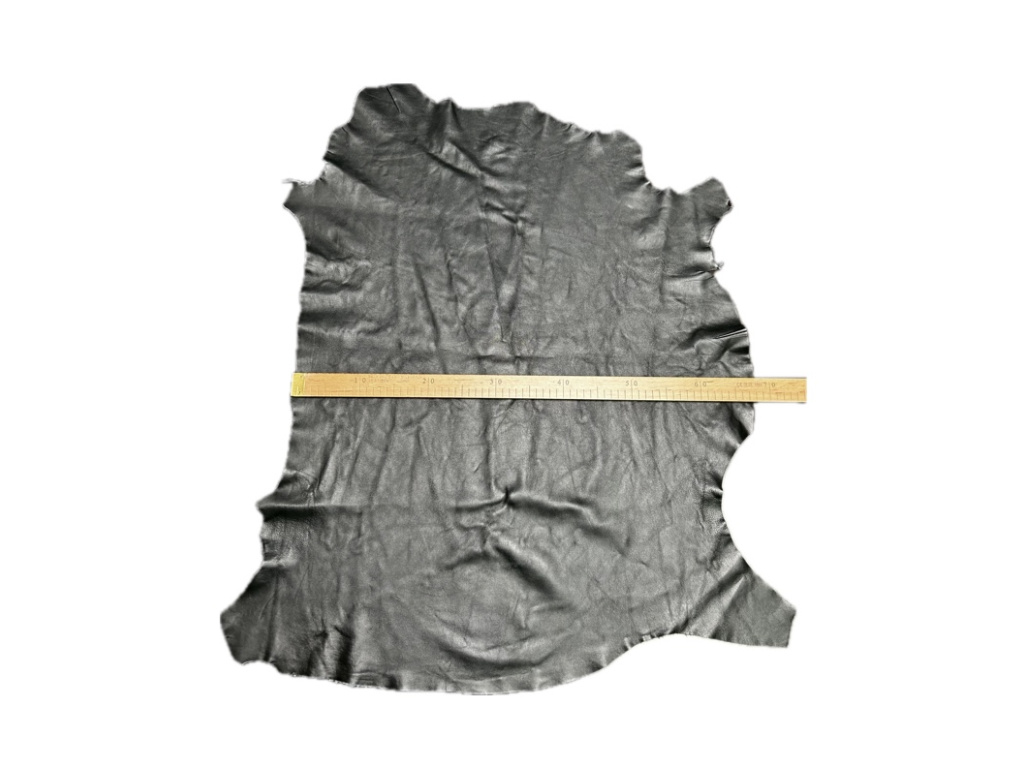 Vysoce kvalitní přírodní jehnětina v elegantní černé barvě, ideální pro jemné kožené výrobky, kde je klíčová měkkost a pružnost. Kůže je tenká (0,8–1 mm), hladká na dotek a dobře se přizpůsobuje tvaru, což ji činí perfektní volbou pro výrobu rukavic, oděvů apod.
