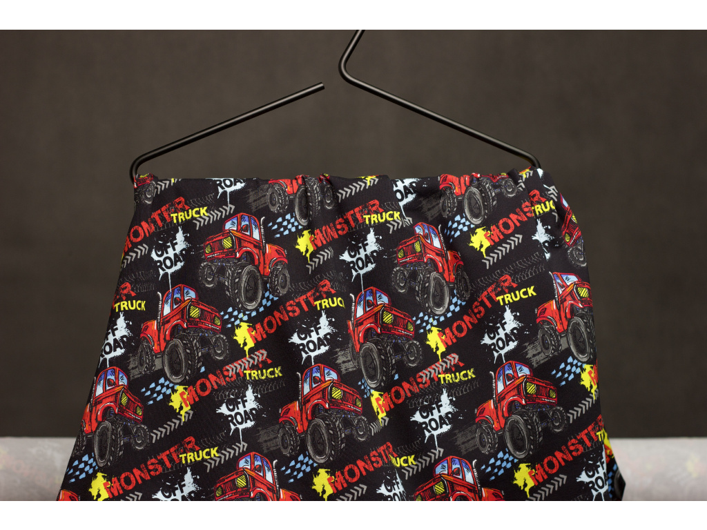 French terry teplákovina bavlněná digitální tisk - Monster truck auta 180 cm šíře