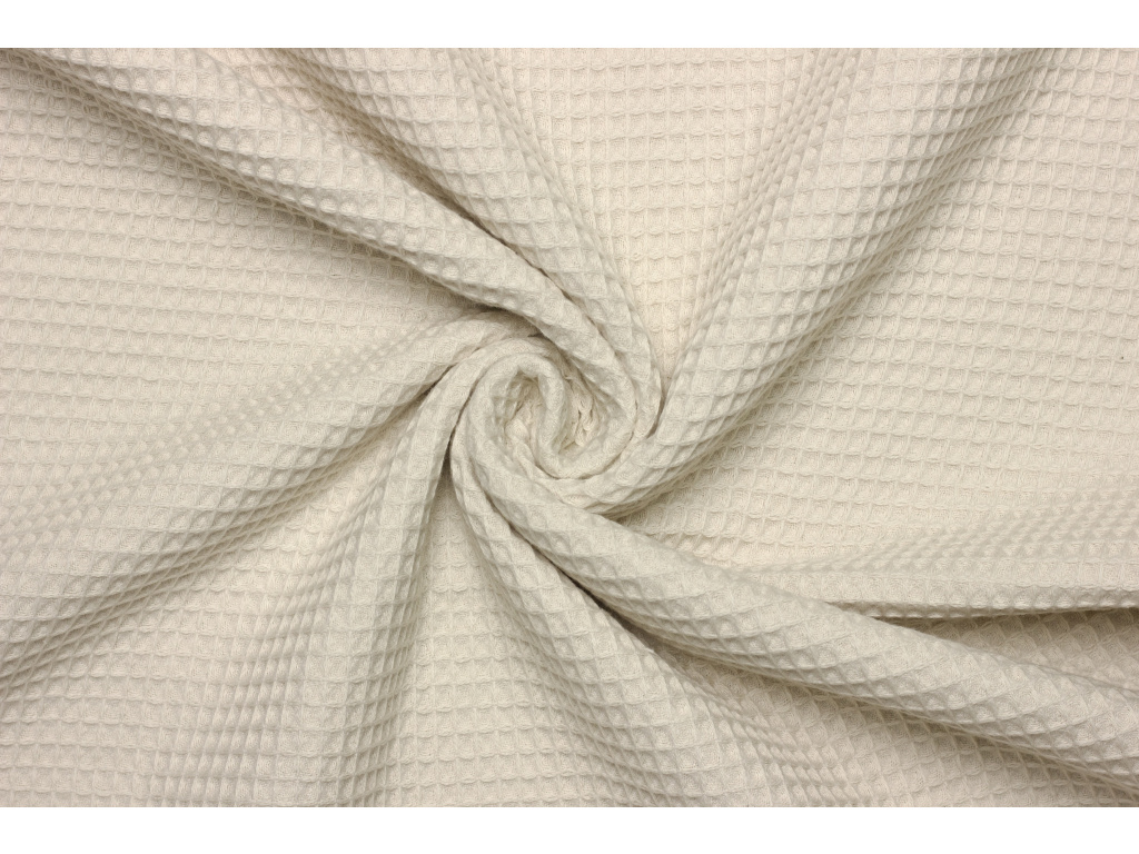 Objevte kouzlo vaflové vazby, která na látce vytváří plastickou strukturu připomínající celosvětově známý moučník. Bavlněná příze zaručí výbornou savost a díky vaflové vazbě látka rychleji schne.